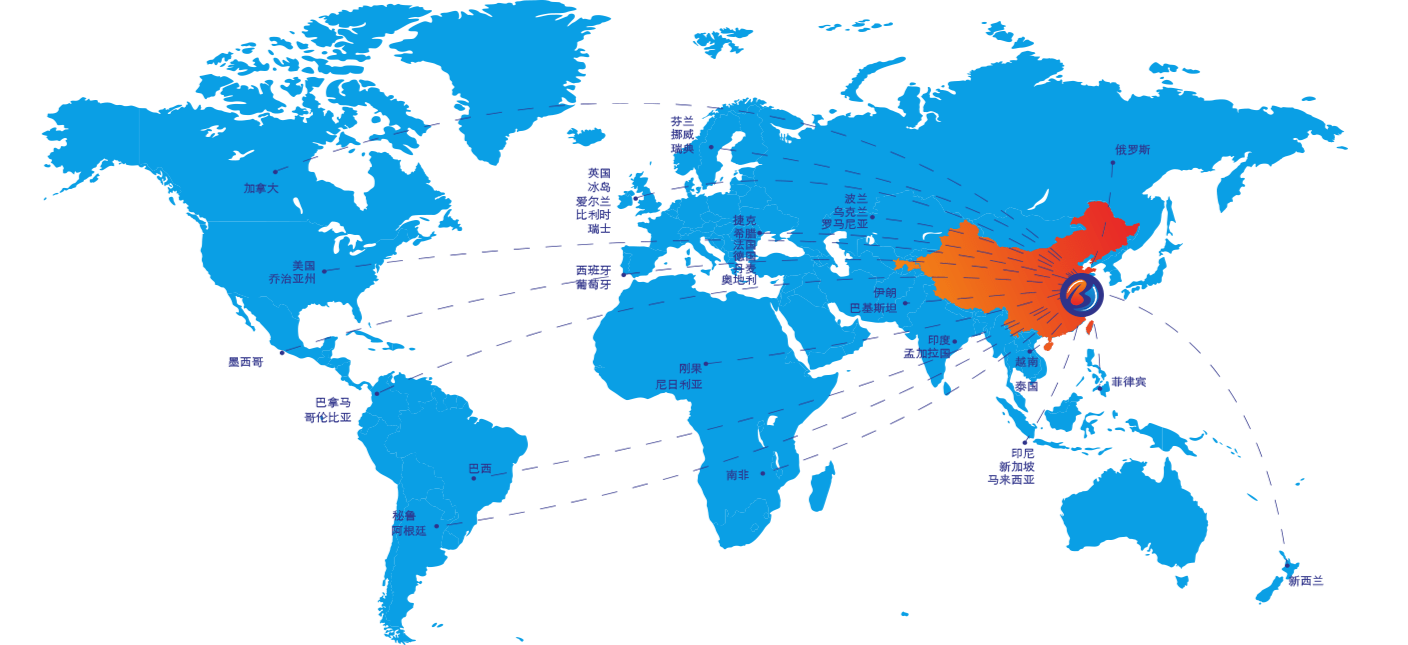 产品出口欧洲、北美、南美、非洲、大洋洲等全球近50个国家和地区